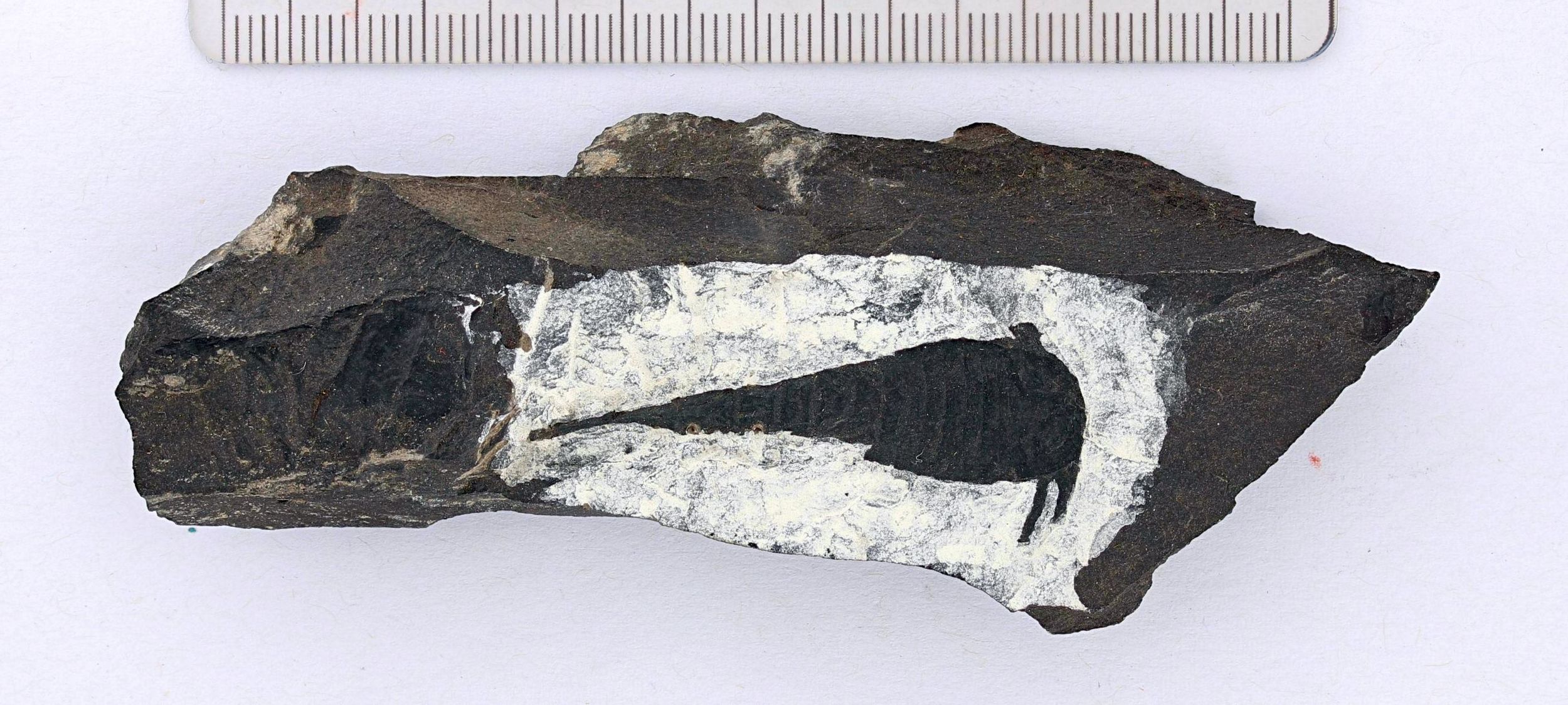Detailfoto van de kakkerlak Miroblattites costalis, met de kop, het lijf en de vleugels mooi bewaard. (Foto: Instituut voor Natuurwetenschappen)