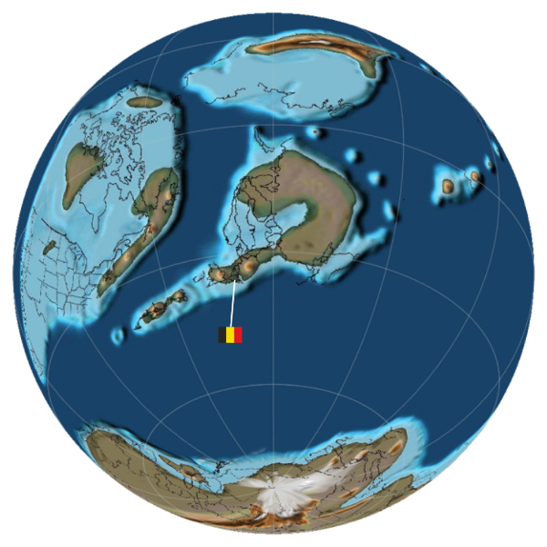 540 million years ago: Belgium lies on the supercontinent Gondwana, near the South Pole. We are attached to what are now Senegal and Mauritania. (C.R. Scotese and GPlates)